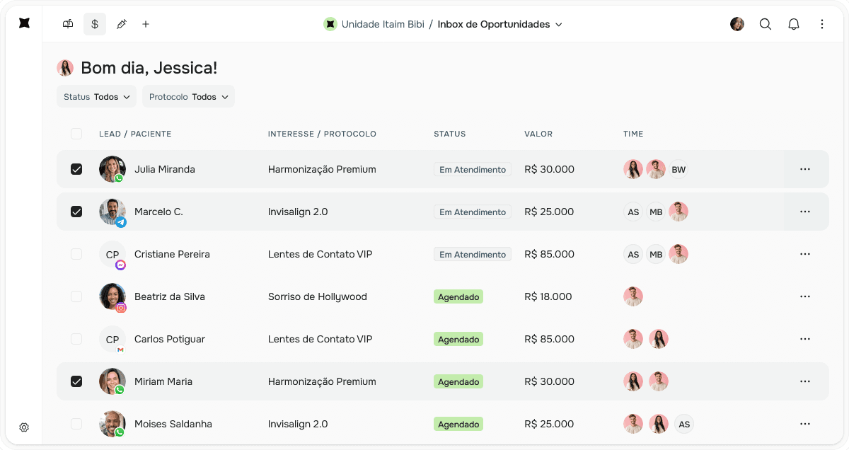 Monitore a jornada completa: do primeiro "Oi" no WhatsApp até a assinatura do contrato.